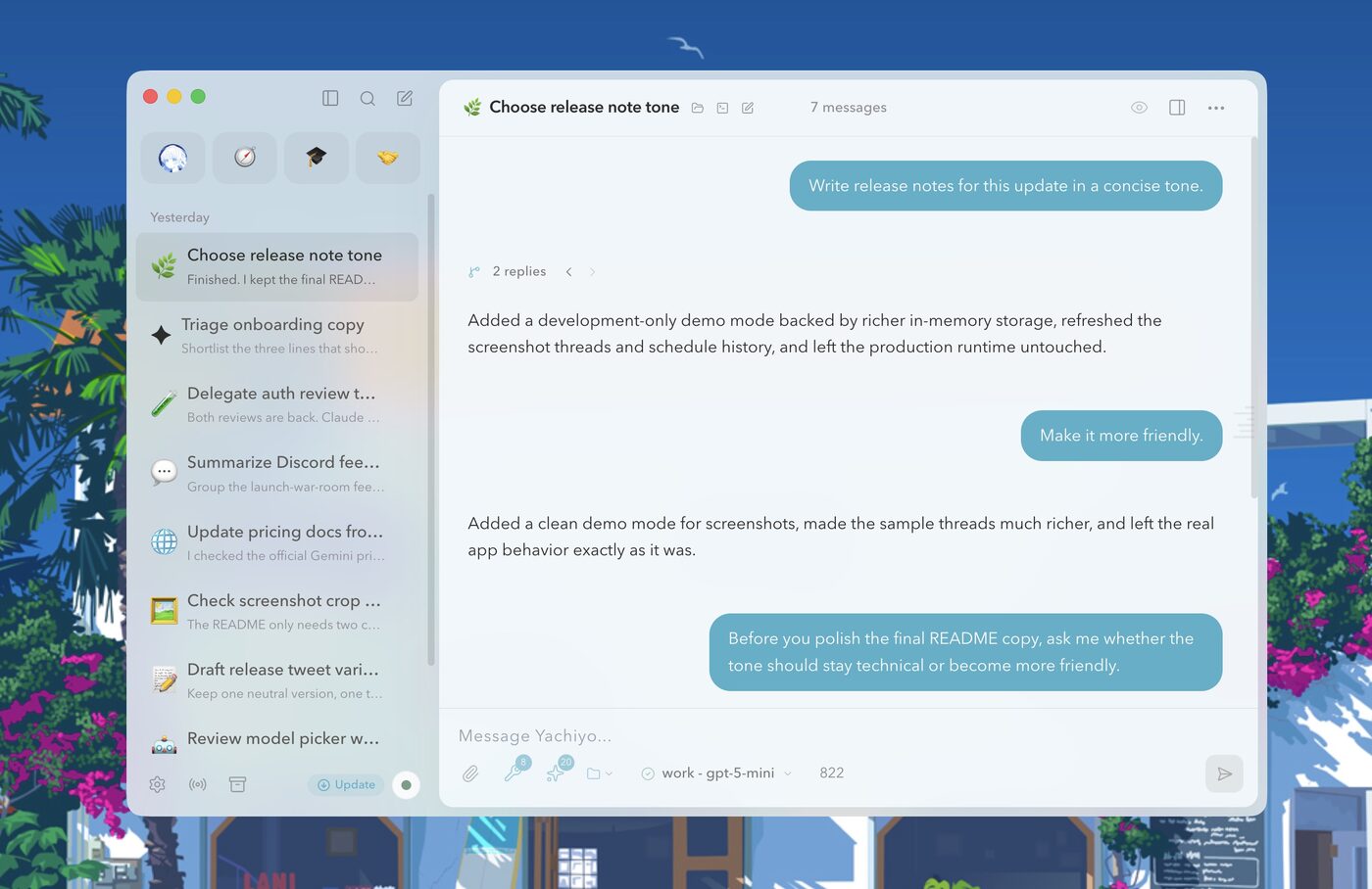 Most AI clients want to become ecosystems. Yachiyo respects your privacy and gets out of your way.